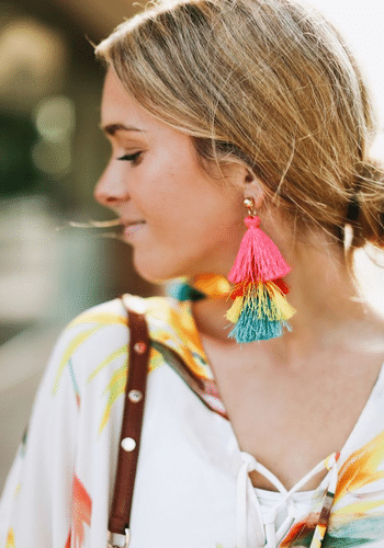 Les longues boucles d’oreilles étaient auparavant considérées comme un accessoire du soir. Les filles les portaient sous une robe chic pour un rendez-vous, une remise des diplômes, un mariage. Maintenant tout est faux. De longues boucles d’oreilles peuvent aller dans un look décontracté.